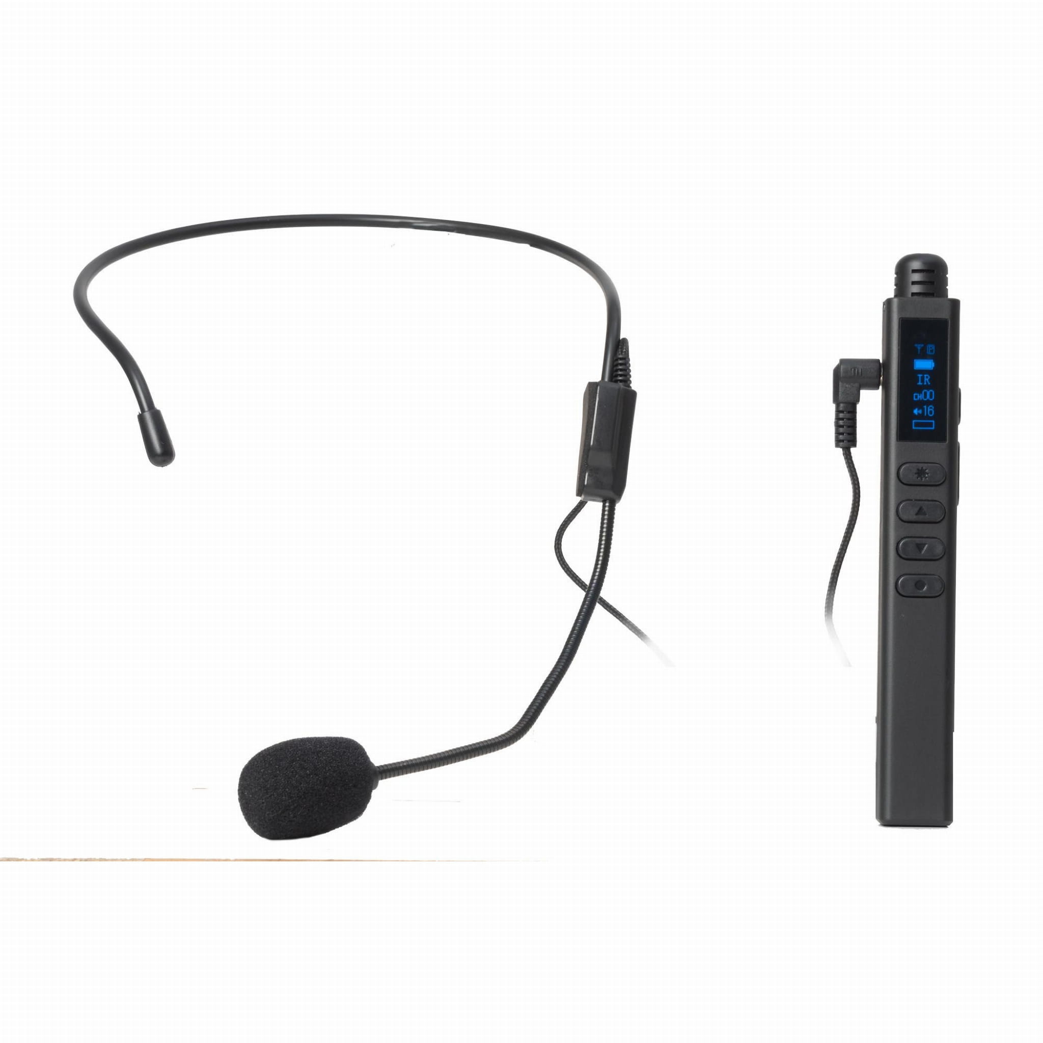 - Bezprzewodowy mikrofon do ręki/zestawu słuchawkowego z jednokierunkową elektretową kapsułą pojemnościową, akumulatorem litowo-jonowym, wskaźnikiem laserowym i funkcją pokazu slajdów