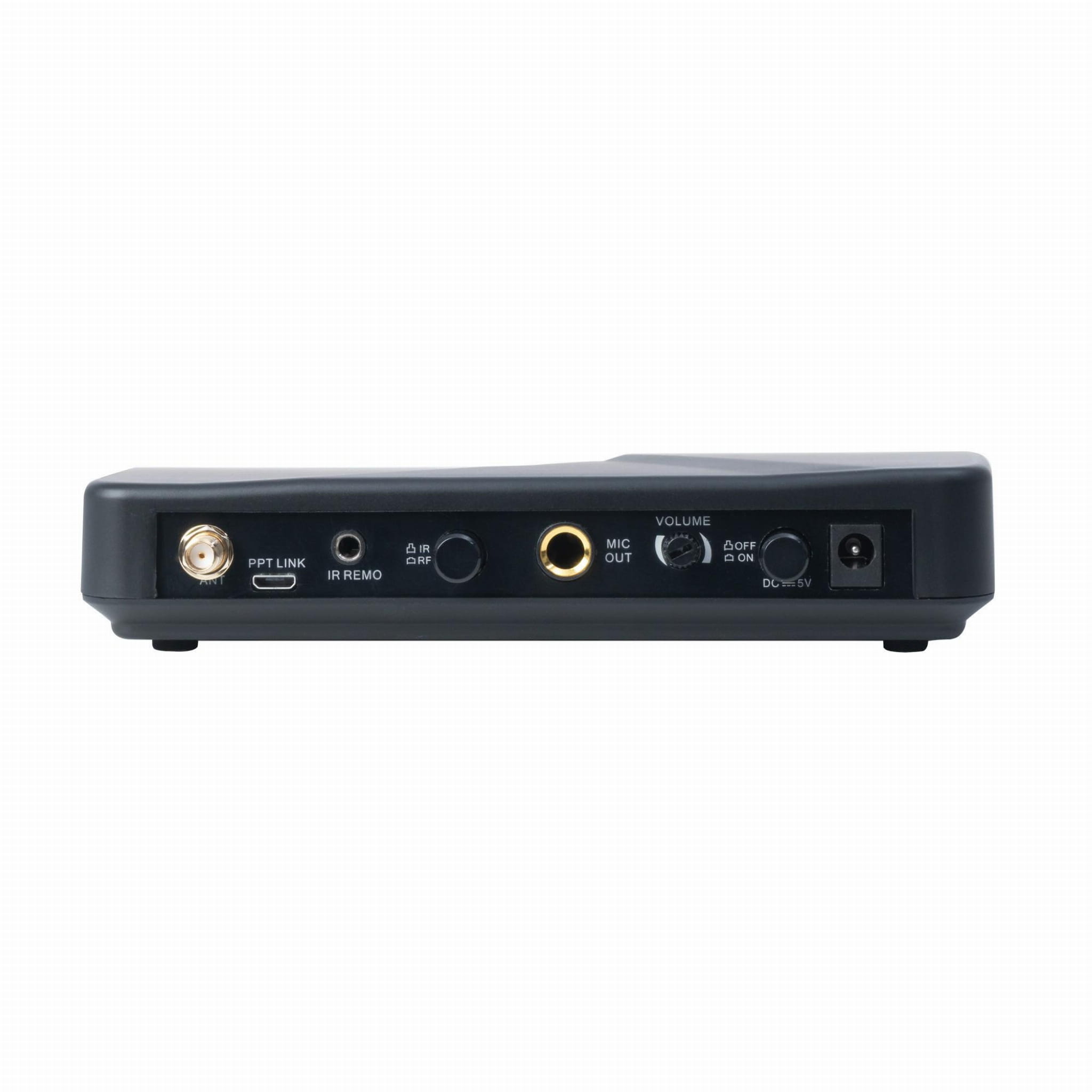 - Bezprzewodowy odbiornik mikrofonowy do edukacji i prezentacji, z wyjściem audio i regulacją głośności