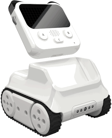 Codey Rocky to tak naprawdę dwa osobne urządzenia, które łączą się ze sobą przy pomocy magnesów. Codey to niezależny kontroler obsługiwany przyciskami. Stanowi mózg całej konstrukcji - to właśnie on uczy się sztuczek, które wdrażane są przez młodą programistkę lub młodego programistę. Codey komunikuje swoje emocje przy pomocy wyświetlacza. Może posłać swojemu właścicielowi uroczy uśmiech, okazać swoje znudzenie lub wyrazić smutek. Codey montowany jest na Rocky’m - jeżdżącej platformie wyposażonej w antypoślizgowe gąsienice. Te dwa elementy tworzą wyjątkowy łazik, który wdraża dzieci w świat Internetu Rzeczy (IoT) i Sztucznej Inteligencji (AI).