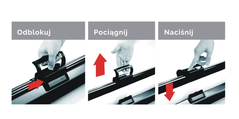 - Nożycowy system rozkładania (za wyjątkiem rozmiaru 81x61cm),
