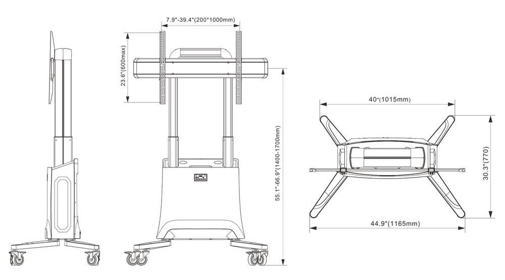 - płynna regulacja wysokości w zakresie 1400 ~1700 mm