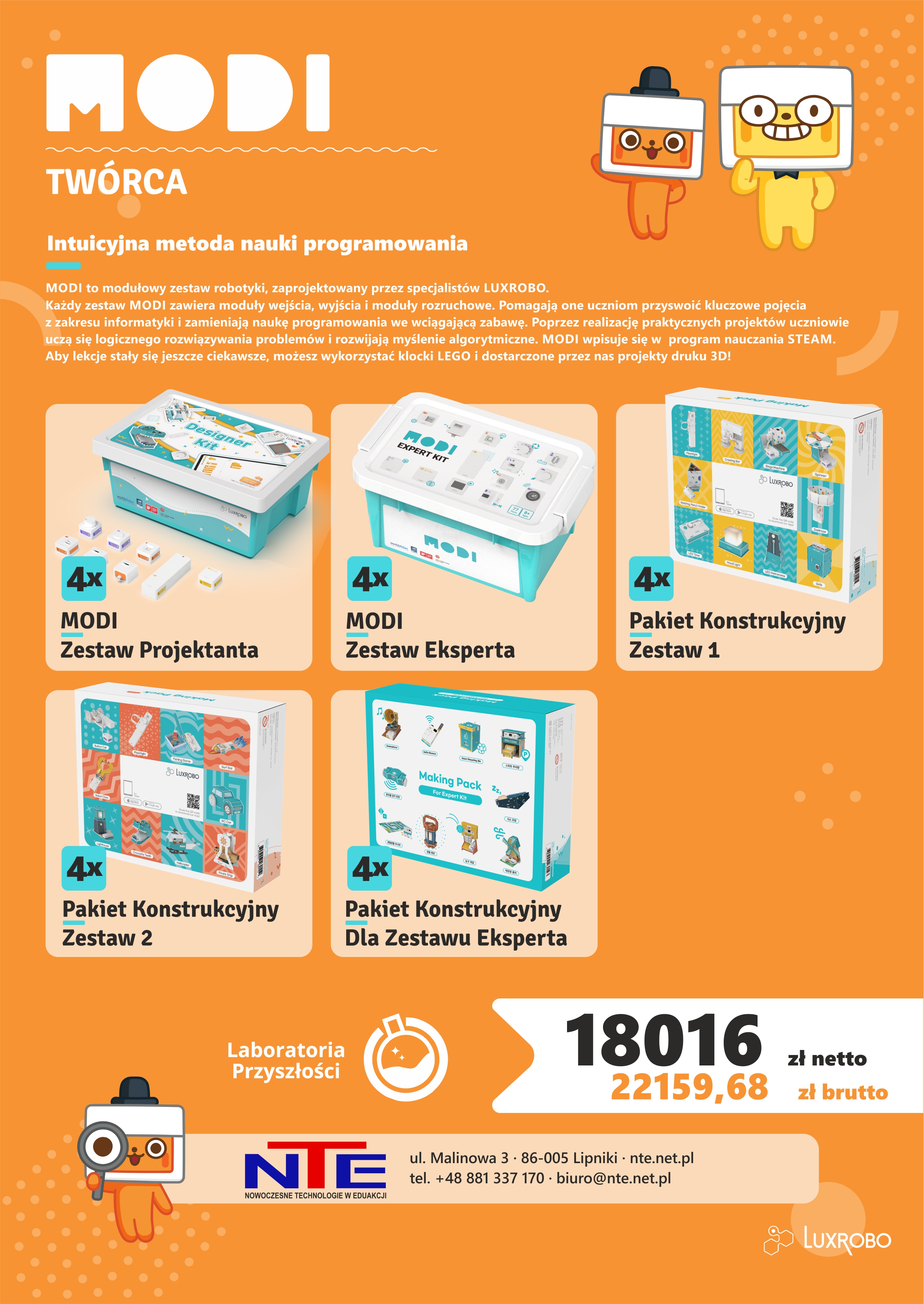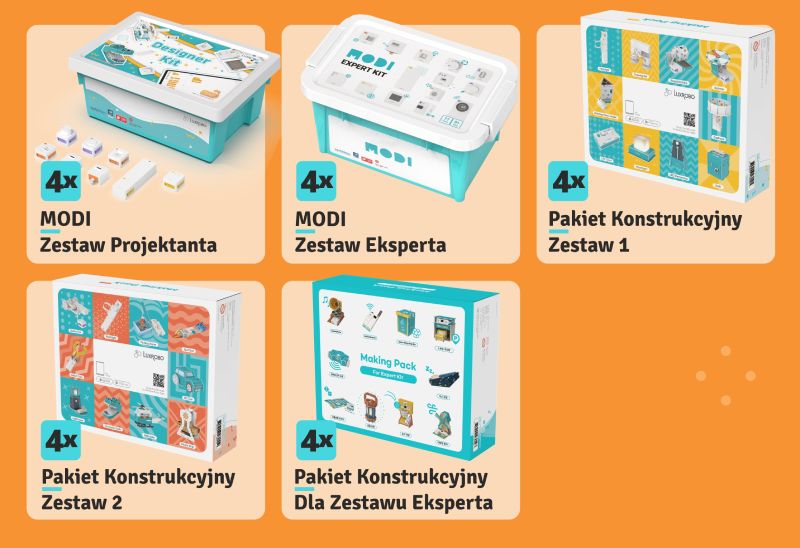 Każdy zestaw MODI zawiera moduły wejścia, wyjścia i moduły rozruchowe. Pomagają one uczniom przyswoić kluczowe pojęcia z zakresu informatyki i zamieniają naukę programowania we wciągającą zabawę. Poprzez realizację praktycznych projektów uczniowie uczą się logicznego rozwiązywania problemów i rozwijają myślenie algorytmiczne. MODI wpisuje się w program nauczania STEAM. Aby lekcje stały się jeszcze ciekawsze, możesz wykorzystać klocki LEGO i dostarczone przez nas projekty druku 3D