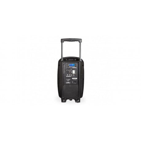Wysoka moc i jakość dźwięku zapewniona przez jego wysokowydajny wzmacniacz klasy D. Integruje wszystkie elementy niezbędne do występu na żywo lub przemówienia: 1 mikrofon bezprzewodowy UHF, 1 wejście mikrofonowe, 1 wejście pomocnicze, odtwarzacz USB/SD/MP3, mikser, funkcja echa i kontrola tonów, głośnik i wzmacniacz. Ponadto wózek transportowy wraz z akumulatorem o długiej żywotności sprawiają, że jest bardzo wszechstronny i można go dostosować do wielu zastosowań. Jest bardzo odporny na transport dzięki solidnej konstrukcji formowanej wtryskowo. Wejścia audio mają standardowe złącza audio na rynku: XLR i RCA. Zawiera pilot zdalnego sterowania do sterowania na odległość. Jego prosta i intuicyjna obsługa minimalizuje czas konfiguracji w zależności od zastosowania. ZASTOSOWANIA Do zajęć na świeżym powietrzu, zajęć grupowych, małych przyjęć, imprez i pokazów objazdowych.