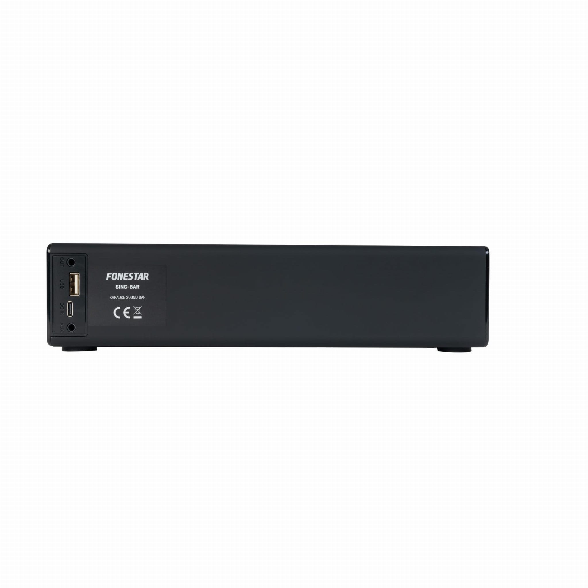 - Bezprzewodowy przenośny soundbar z odtwarzaczem USB/MP3 i 2 mikrofonami bezprzewodowymi UHF.