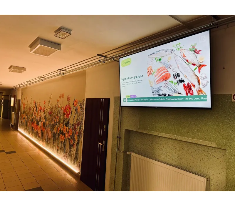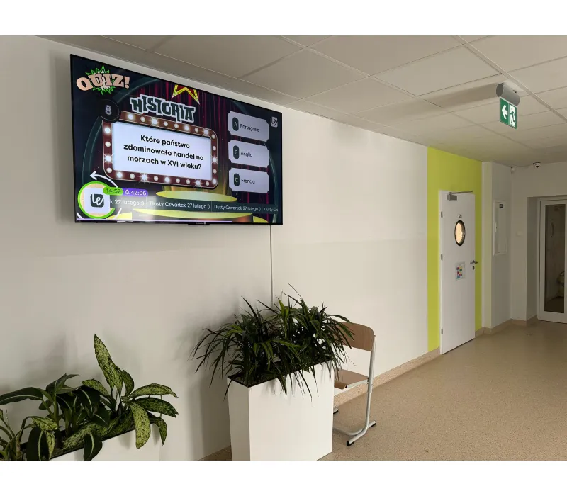 - Kompleksowe rozwiązania Digital Signage – idealne do wyświetlania treści na ekranach w korytarzach szkolnych.