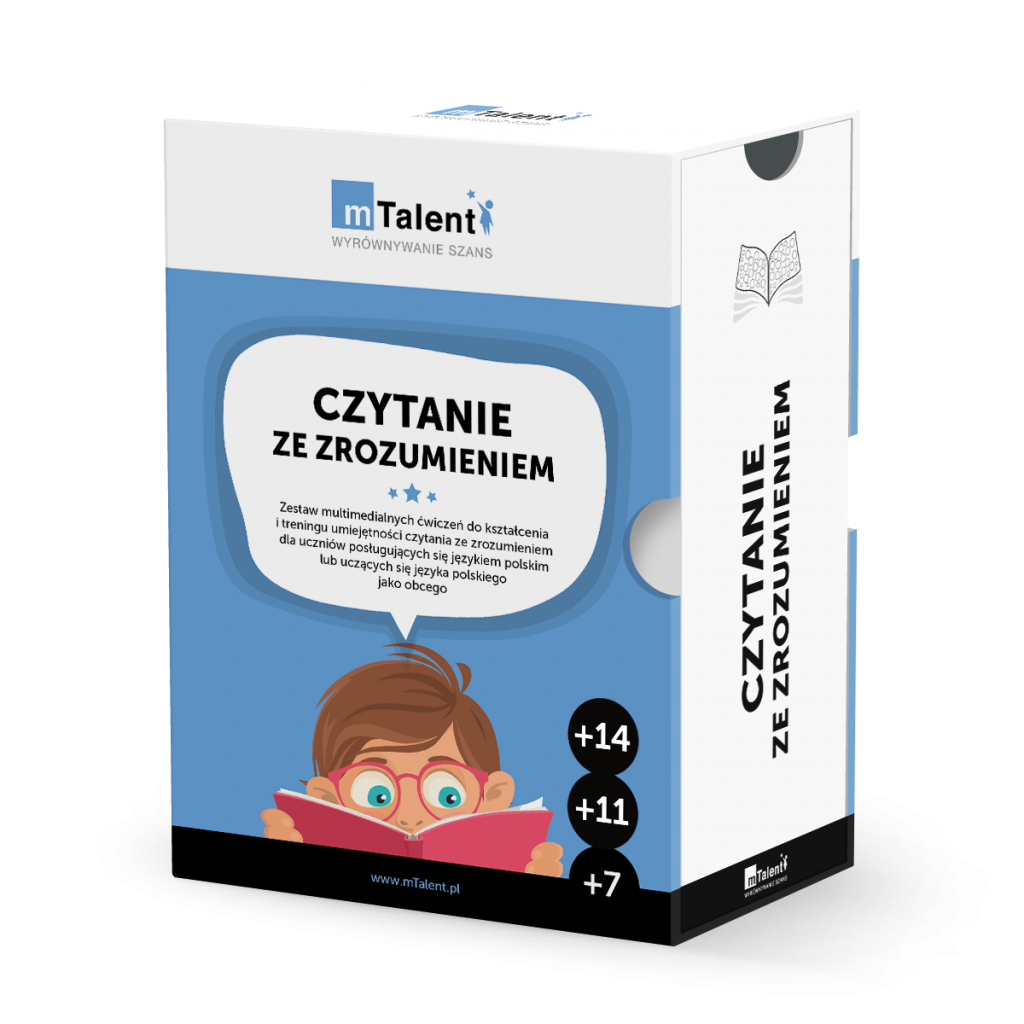 mTalent Czytanie ze zrozumieniem to doskonałe narzędzie na zajęcia z zakresu pomocy psychologiczno-pedagogicznej (np. korekcyjno-kompensacyjne, dydaktyczno-wyrównawcze) lub zajęcia dodatkowe z języka polskiego dla uczniów przybywających z zagranicy, zajęcia rewalidacyjne, a także zajęcia z zakresu podstaw języka polskiego jako obcego.