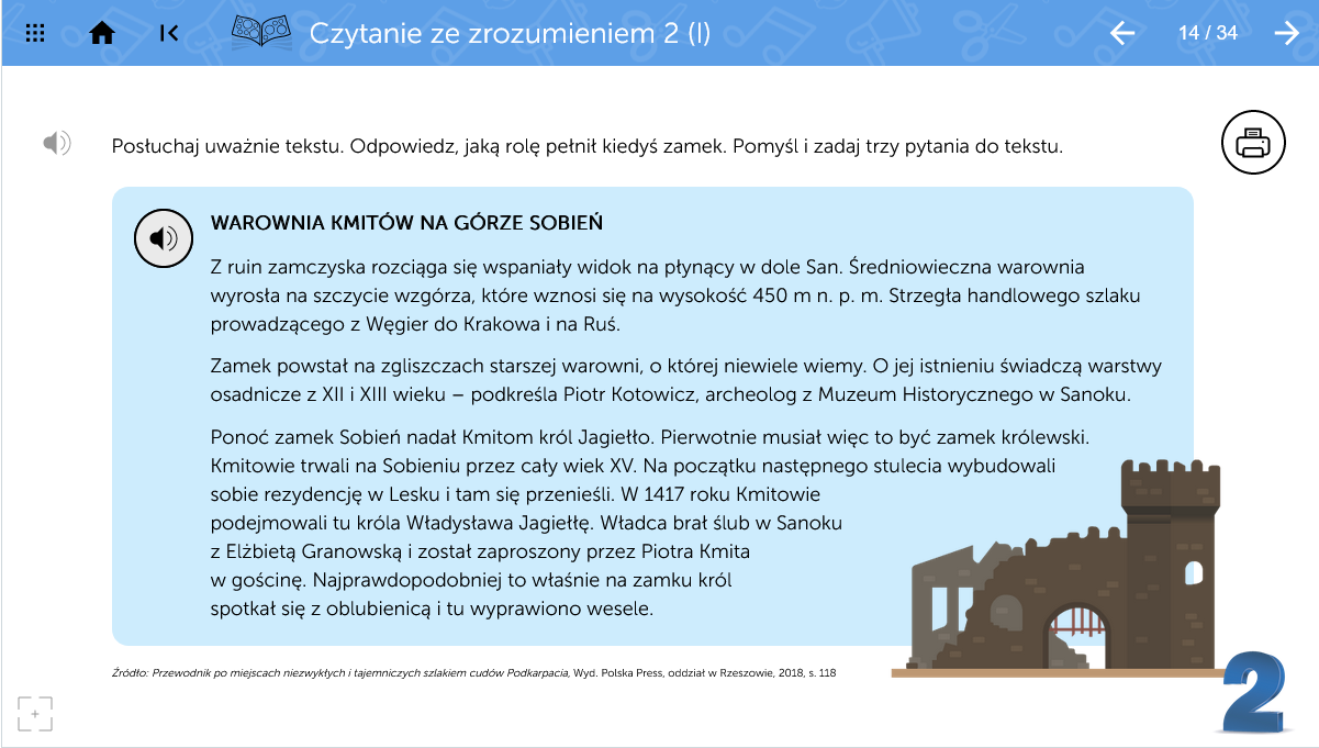 ● teksty do czytania i zestawy ćwiczeń interaktywnych prezentujące materiał, który odwołuje się zarówno do potencjału intelektualnego, jak i emocjonalnego uczniów (co zwiększa ich ciekawość poznawczą i motywację wewnętrzną),